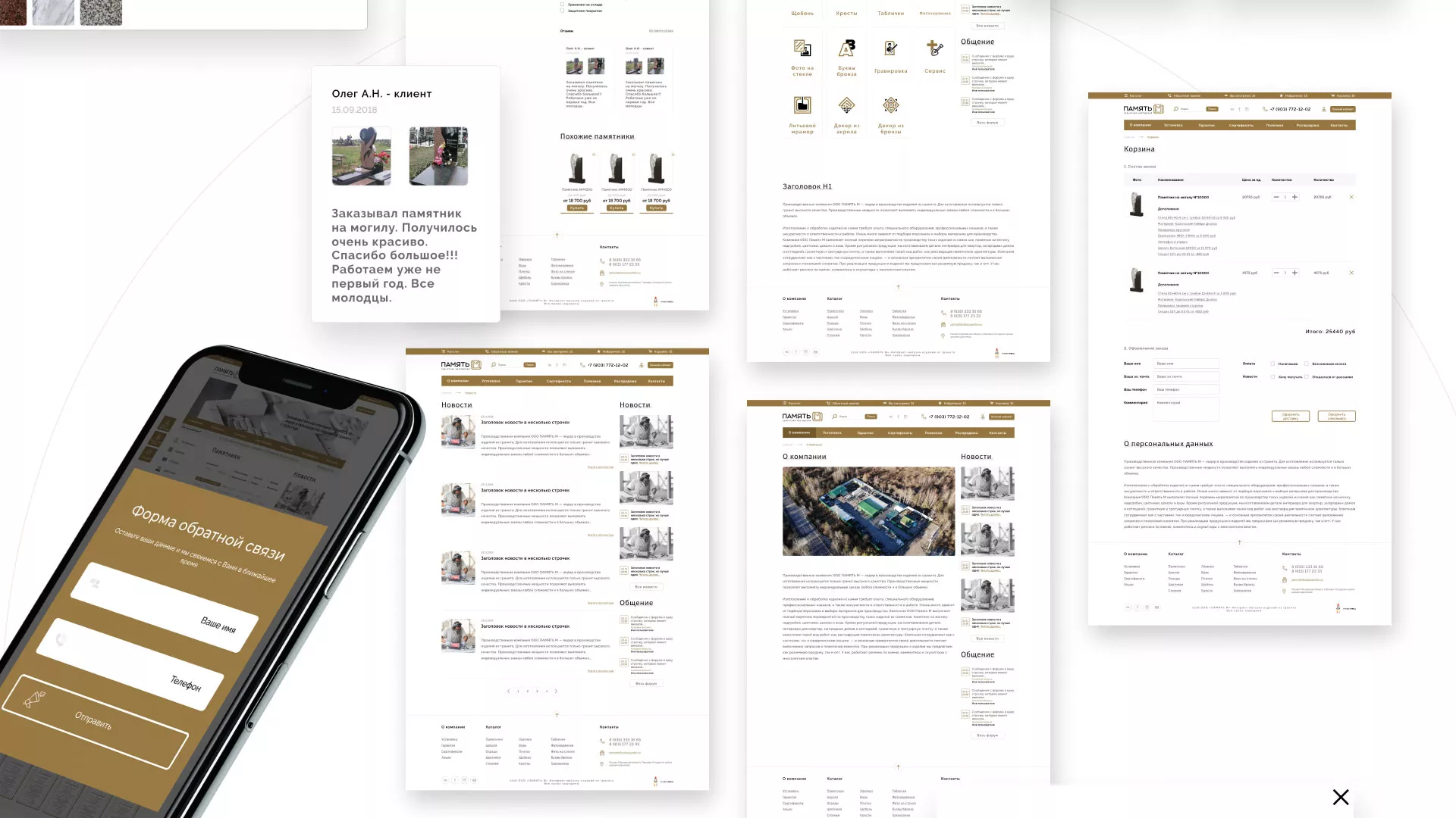 Разработка логотипа, фирменного стиля и сайта в Новокубанске для компании «Память-М». Компания является предприятием по изготовлению всех видов надгробных сооружений: памятников, цоколей на могилу, оградок, столов, лавочек, ваз, балясин, плитки, мемориальных комплексов. Компании «Память-М» изготавливает все виды мемориальных изделий на собственном производстве в Новокубанске.