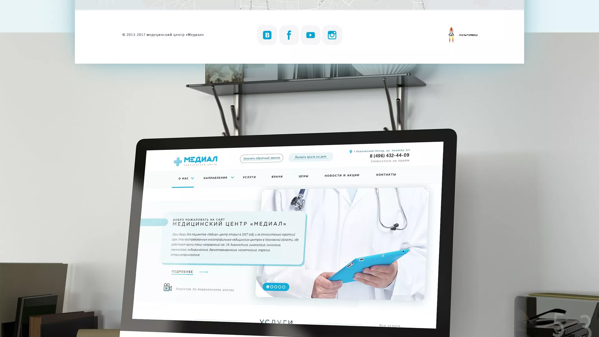 Сайт медцентра «Медиал» в Новокубанске является «лицом» учреждения, презентует его с лучших сторон, доступно информирует об оказываемых услугах. Он легкий в навигации и использовании. На таком сайте должно быть просто узнать о врачах, услугах, записаться на прием всем возрастным категориям, от 16 до 60 лет. Это должен быть современный, функциональный и эстетически приятный сайт. В рамках создания сайта для медицинского центра компания «Мультзавод» в Новокубанске ориентируется именно на эту задачу.